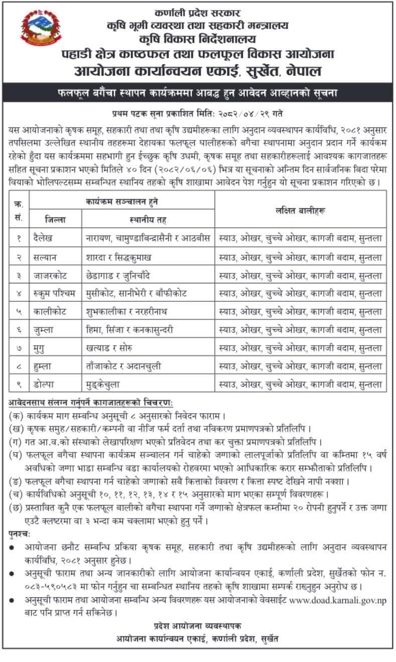 Call for Applications for Fruit Orchard Establishment - PIU Karnali