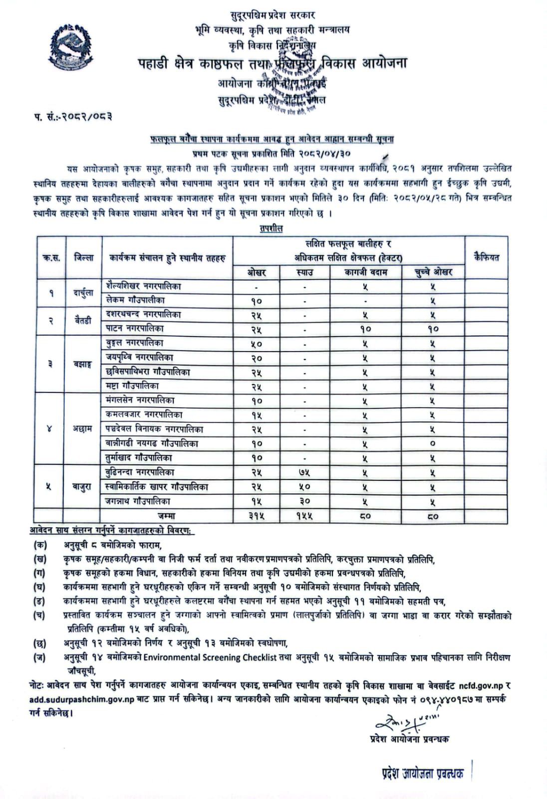 Call for Applications for Fruit Orchard Establishment - PIU Sudurpaschim